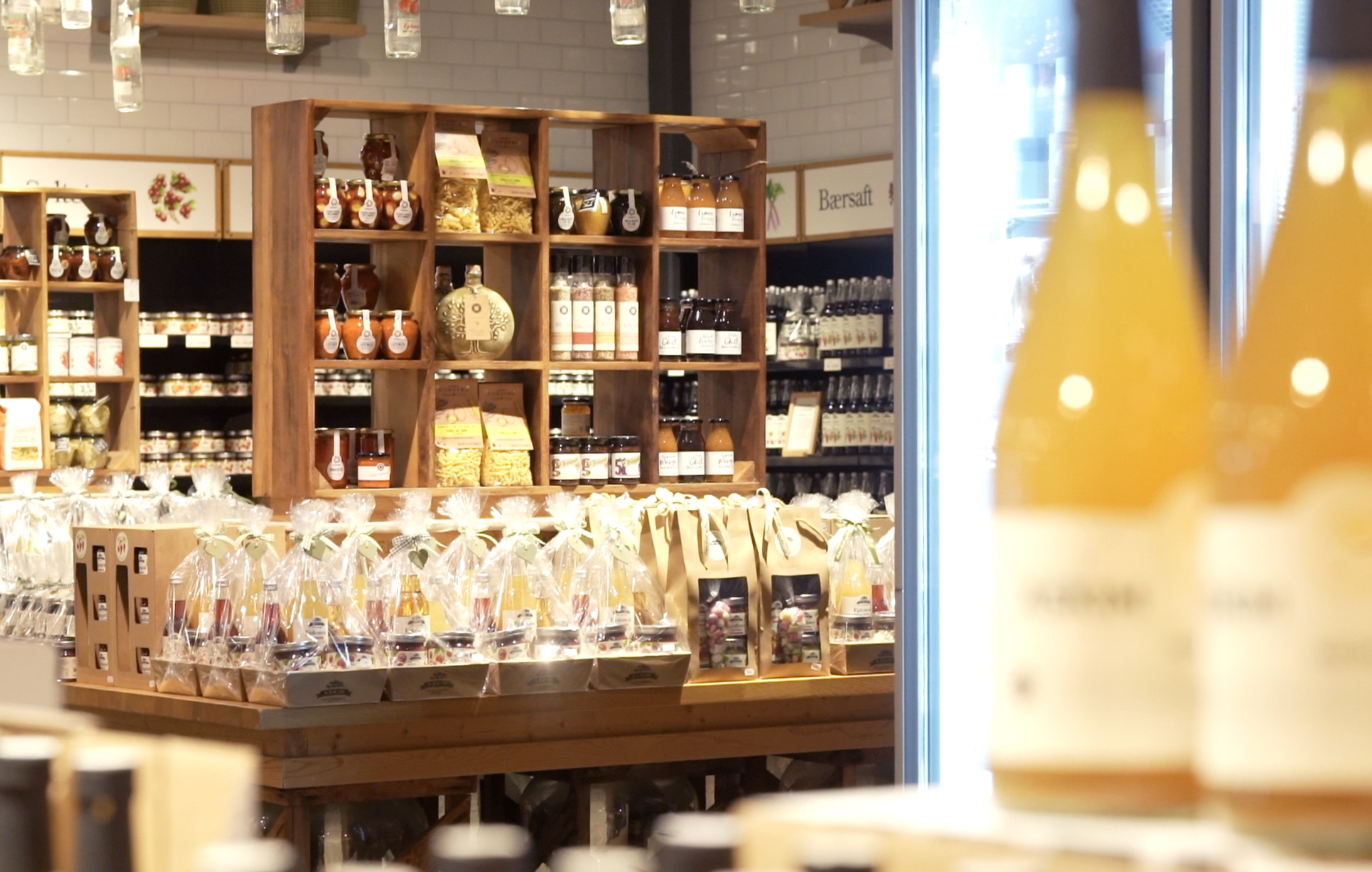 – Vi er en produksjonsbedrift som foredler produkter av frukt, bær, grønnsaker og raps – både under egen merkevare og i noe leieproduksjon. Vi selger mye ut gjennom grossister, hoteller og restauranter, og her vi står nå – i butikken – er vi veldig stolte av det vi tilbyr kundene våre.